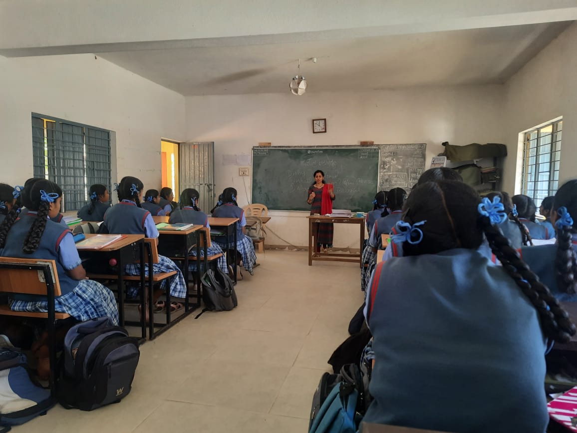 Newly trained local trainers and volunteers helped deliver Holistic Health training to students at Government Girls’ High Schools in Channarayapatna and Hirisave, Karnataka.